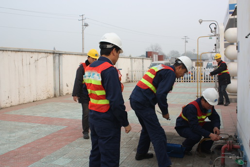 12月6日下午15時(shí)50分,安慶港華燃?xì)饧t關(guān)CNG加氣站內(nèi)響起急促燃?xì)鈭?bào)警器聲。緊接著,加氣工迅速關(guān)閉加氣機(jī)應(yīng)急球閥停止加氣,禁止車(chē)輛移動(dòng),并大聲呼喊:“漏氣了,大家快撤到站外安全地帶。”15:52分,站內(nèi)司乘人員在加氣工的指導(dǎo)下,全部撤到站外,并在站外拉起警戒線。16:00,站內(nèi)搶修人員通過(guò)對(duì)泄漏現(xiàn)場(chǎng)的初步判斷泄漏來(lái)自2#壓縮機(jī)處,立即停止壓縮機(jī)工作。如此同時(shí),當(dāng)班班長(zhǎng)立即把現(xiàn)場(chǎng)情況向站長(zhǎng)報(bào)告。16:10分,接到指令的站、部門(mén)負(fù)責(zé)人帶領(lǐng)部門(mén)應(yīng)急行動(dòng)小組趕到現(xiàn)場(chǎng)。經(jīng)過(guò)各行動(dòng)小組緊張、有序的處置,僅用20分鐘的時(shí)間就成功檢查并消除了泄漏——2#壓縮機(jī)法蘭處。16:32,現(xiàn)場(chǎng)指揮發(fā)出:“解除警戒,演練結(jié)束”指令。