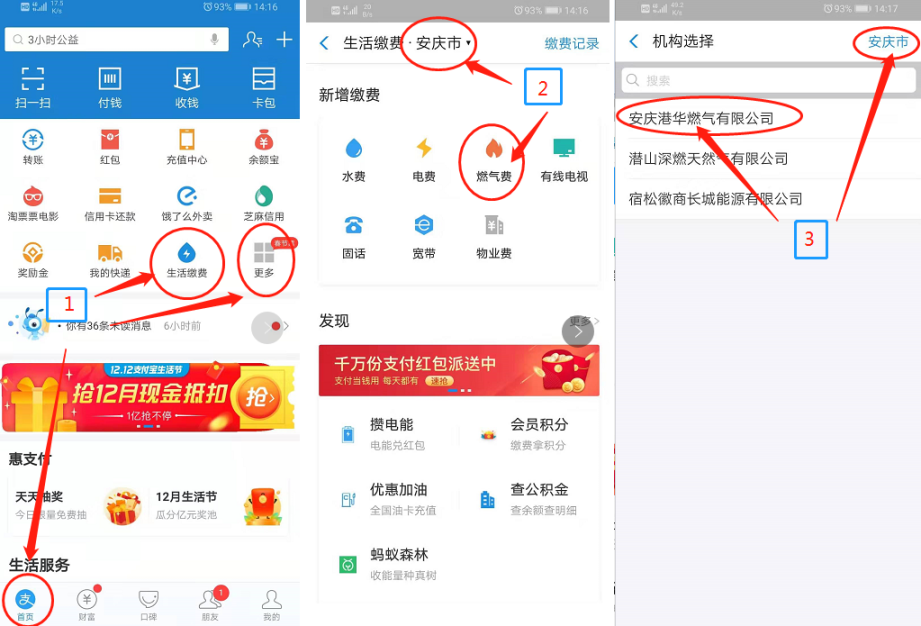皖事通:安裝并打開皖事通APP,進入“更多服務(wù)”-選擇“生活服務(wù)”-“生活繳費”,點擊“燃氣費繳納”即可繳納燃氣費或者預(yù)存氣費。