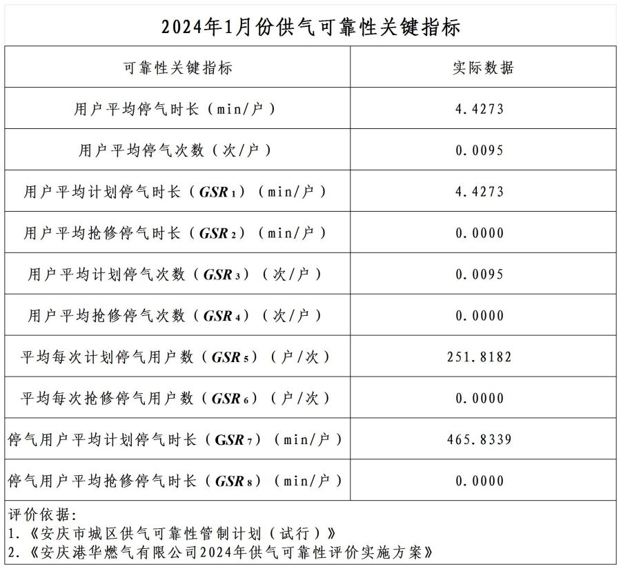 2024年1月供氣可靠性關(guān)鍵指標(biāo)